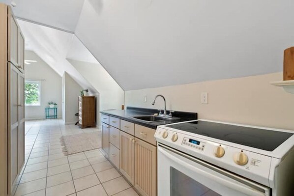 Cozy open concept above garage apartment. 4 beds. Cottage Kitchen.