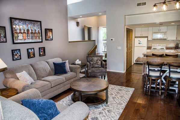 Located in the heart of Fairfield Glade resort, this golf villa offers a relaxing retreat with sunken living room, vaulted ceilings and charcoal grills in common courtyard. Enjoy family-friendly activities within walking distance like pool, putt-putt and walking trails or stay entertained indoors with 3 Smart TV's. With access to internet and amenities like washer/dryer, your stay is sure to be convenient.