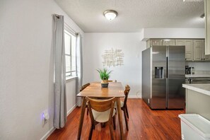 Central DFW is home to this spacious 1BD/1BA condo, ideal for professionals or couples on extended stays. With a king bed, cooking essentials, workspace and in-unit washer/dryer, it offers a versatile living/working area. Relax at the pool or unwind on the patio with access to fenced yard.