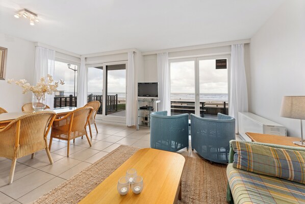 Spacious holiday appartment on the seafront in De Haan with frontal sea view and pleasant terrace.