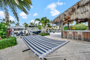 Tucked away in a quiet cul-de-sac, this Delray Beach home offers a heated pool and spacious yard with water access. Unwind at the tiki hut or bocce ball court, just minutes from Atlantic Avenue and Mizner Park.