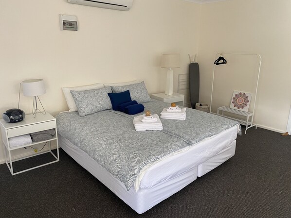 Fabulous location in centre of main Street. Comfy king size bed. Modern bathroom. Small fridge was either too hot, or it froze all our food…..a new fridge needed. Other than that, a lovely unit to stay at.