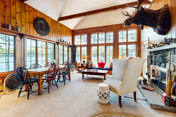 Escape to this stunning lakefront retreat in Denmark, Maine, where tranquility and natural beauty await. This spacious rental features two charming homes on one property, making it ideal for larger groups, families, or friends seeking a peaceful getaway together.