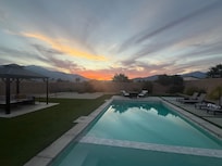 Experience the perfect desert getaway at this beautiful home. Enjoy a 15-minute drive from Palm Springs Airport and downtown, then unwind in the expansive backyard with an 8-person spa, pool, and sand volleyball court. The brand-new construction features tasteful decor and comfortable furniture.