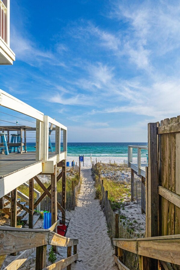 ☀️ Crystal Beach: Just 900 feet from your front door, Crystal Beach offers pristine sand and crystal-clear waters, perfect for sunbathing, swimming, or beach games.