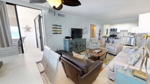 At Unit 205B, enjoy the warm Gulf Coast ambiance in this light and bright two-bedroom retreat. Relax on the balcony with fabulous views of the beach and pool, or unwind in the spacious main room with a full kitchen and comfortable living area.