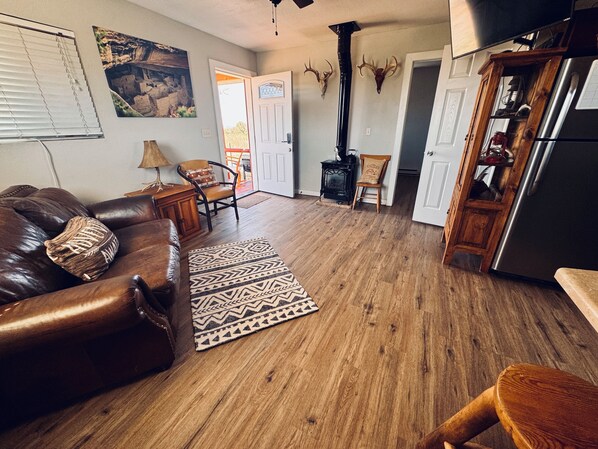 TV, fireplace - Cute private cabin on working cattle ranch  with 360 views on 80 acres. (Dolores)
