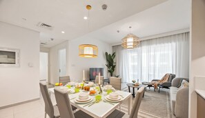 Dubai Creek Harbour, a neighbourhood in Dubai, is home to this apartment. Dubai Festival City Mall and Dubai Mall are worth checking out if shopping is on the agenda, while those wishing to experience the area's popular attractions can visit Dubai Aquarium & Underwater Zoo and Wild Wadi Water Park. Looking to enjoy an event or a game while in town? See what's happening at Dubai Tennis Stadium or Meydan Racecourse.