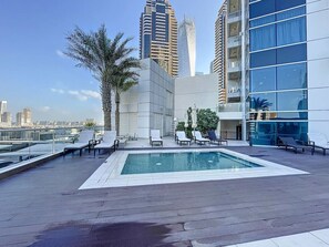 Located in Dubai Marina, this two-bedroom property boasts comfortable living areas and luxurious amenities. Enjoy the calm ambiance, high-speed Wi-Fi, and hotel-grade essentials like fluffy towels and linens. Relax on the fully furnished balcony or take a dip in the swimming pool.