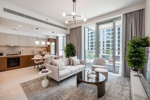 Escape to this chic retreat near Emaar Beachfront, where modern comfort meets luxury. Unwind in the infinity pool or bask on the balcony with a glimpse of the beach. With high-speed WiFi, a fully equipped kitchen, and ample storage space you can indulge in relaxation and convenience.