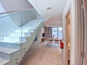 In a peaceful community, this lovely townhouse in Dubai offers a serene escape with lush parks, walking and jogging tracks, and beautifully maintained gardens. The interior is calm and relaxing, featuring an open-plan living area with high-speed Wi-Fi throughout. Enjoy hotel-grade amenities including fluffy towels and linens.
