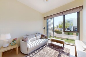 Surrounded by lush landscapes in the exclusive Dubai Hills Estate, this five-bedroom villa offers a peaceful retreat with ample space for families or friends. Enjoy a fully equipped kitchen, spacious living room and private garden with high-speed Wi-Fi throughout. A 5-minute walk to the community pool and gym ensures an unforgettable stay.