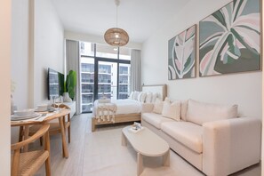 Vibrant Studio at Azizi Riviera in Maydan One Near Burj Khalifa provides everything that you need. Guests can connect to free WiFi in public areas.