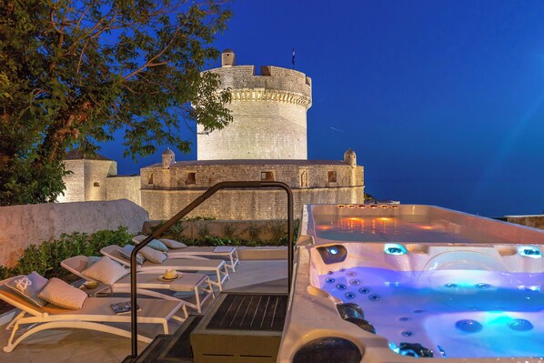 This is a completely renovated 3-bedrooms villa offering a remarkable view over the most famous Dubrovnik Fortress called Minceta. The villa features a spacious terrace with a swim spa pool equipped with Jacuzzi - hot hydro massage tub for 6 persons ( up to 37 c/...98.6f) and counter current infinity swimming system for 2 persons ( up to 3o c/.86...f). All villa guests can enjoy in it any time during the whole year and also relax in the garden.