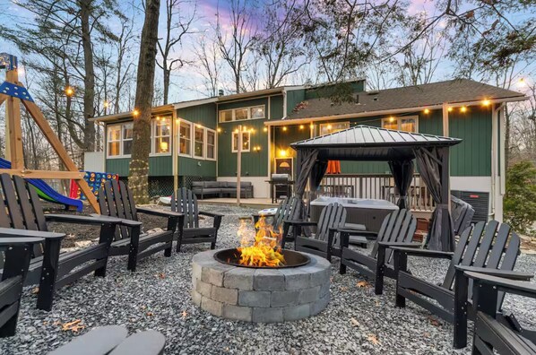 ☀ Hot tub ☀ Fire pit ☀ Jungle gym ☀ Giant Connect 4 ☀ Giant Jenga ☀ Corn hole ☀ BBQ grill ☀ Outdoor dining ☀ Outdoor lounge seating