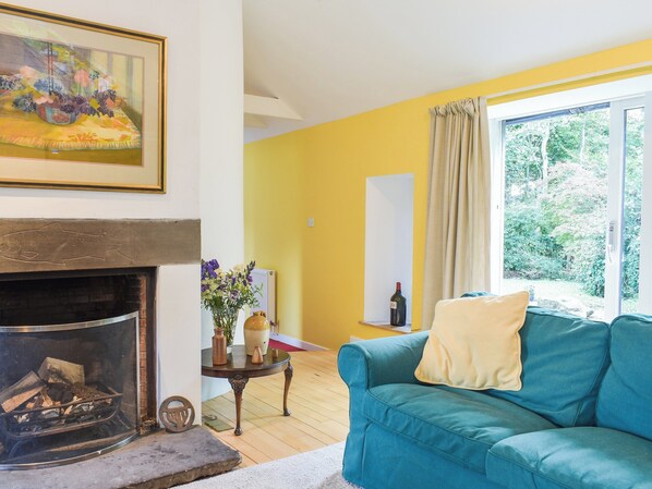 Living area: (1 Step), (No TV), Open Fire, French Doors Leading To Garden