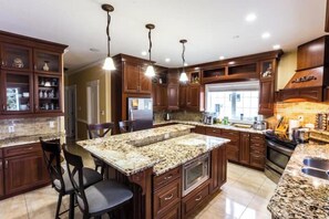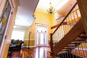 Nestled in a peaceful area, this enchanting home invites you to unwind by the fireplace or soak in the year-round hot tub. Discover its traditional European charm and explore amenities like billiard/ping-pong tables, a fully-stocked kitchen with coffee maker and tea flavors, as well as access to Netflix on your room's TV.