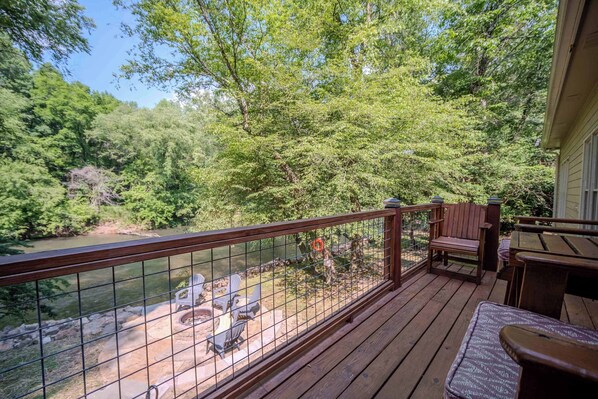 This was such a wonderful home for our long weekend away! We wanted a place where my husband and son could fish from the backyard, and this fit the bill. The rest of us loved the views of the river. It was so relaxing to see the running water from our bedroom, the living room, or the porches! It was a very comfortable set up. We had my two year old son, me and my husband, and our parents (including one with mobility issues). Everyone had their own comfortable space as well as comfortable gathering spots for us to be together! The hosts have put in a lot of attention to small details that make a difference. Having a toddler in tow, it was so nice that they had a pack n play, high chair, and even toddler/kid utensils and dinnerware stocked! The coffee bar was enjoyed every morning, and they have everything we needed for cooking our meals at home, plus lots of extra treats like wine and a snack basket. They even had extra ponytail ties in the master bath--so thoughtful! The location was convenient to town, and our crew enjoyed the hot tub and the tubes they provided. We drove upstream a couple miles, put our tubes in at the Cartecay Canoe Launch, and were able to float right to our backyard and get out there! We would definitely rent this home again and recommend it to others.