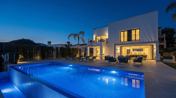 Villa La Résina is a newly built villa with an infinity-edge pool and a lovely garden surrounded by cedars to ensure you a lot of privacy and comfort during your stay. The giant patio has a covered terrace ideal for a gathering with your loved ones and some sun loungers to sunbathe under the palm trees. Or, if you want infinite sunbathing under the Andalusian sun, the rooftop terrace will be your best option.