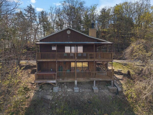 Secluded authentic log cabin with firepit, pizza oven & private patio