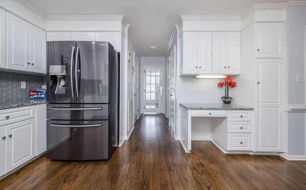 Fridge, microwave, oven, stovetop - Charming 3-bedroom house with pool, jacuzzi bathtub, and WiFi for Masters rental (Evans)