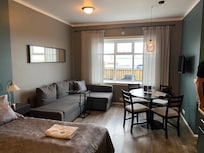 Located on Eyrarbakka's shores, Bakki Hostel and Apartments offers a coastal experience with horseback riding and a sunny terrace. Nearby, Rauða Húsið bar and seafood restaurant provide dining. Visitors praise the attentive staff.