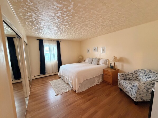 A second floor apartment rental unit all to yourself for your entire stay. There are two appointed bedrooms, one with a king-size bed and one with a queen-size bed plus a workspace with desk and chair. Both bedrooms are equipped with ample storage space, comfortable beds and linens to ensure a good night's sleep.