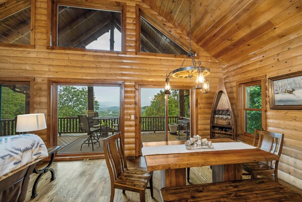 Photo gallery for At Trail's End: Family Friendly Mtn Top Cabin, Porch and Patio area, Covered Hot