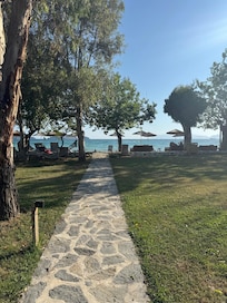 Travelers enjoy seaside relaxation at Yonca Lodge with a warm breakfast buffet and beachfront dining. The private beach is perfect for sunbathing, and the library offers quiet reading. A seasonal outdoor pool completes the refreshing coastal experience.