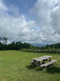 Perched on a ridge with 270-degree views of Grandfather Mountain, this custom-built tiny house offers an unparalleled retreat. Unwind in the spacious bathroom or snuggle up by the smart TV; enjoy WiFi, a fully-stocked kitchen and deck with custom bench.