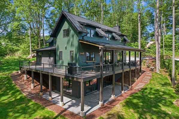 Add a splash of color to your Asheville vacation! Featuring three levels of living space and an inviting hot tub, Colorscape puts you less than ten minutes from the airport and local breweries, and close to outdoor attractions such as the Blue Ridge Parkway, the North Carolina Arboretum, and river access at Bent Creek River Park. There is plenty of space at this beautiful new construction home for your whole group. While the kids are playing ping pong in the recreation room downstairs, you will be enjoying the private outdoor entertainment area's hot tub and wood fire pit. When mountain rain comes, enjoy the fresh air relaxing under the covered wrap-around deck. Vibrant contemporary decor livens up the mood throughout the house with delights including whimsical artwork, oversized fuzzy rugs, and a birch log gas fireplace. The showcase gourmet kitchen has everything you need and more, from a built-in wine cooler to an espresso machine, with features that make preparing food a little easier, such as the extra-large refrigerator, ample counter space, and island seating. If you tour any local breweries by day, bring home some of your favorite Asheville beers and serve them at Colorscape's wet bar!