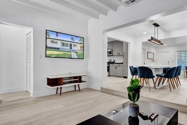 This superbly styled home is perfect for a luxurious getaway. It`s ideal for large groups of friends & family looking for a dreamy and adventurous Hollywood vacation. It`s an excellent base for those looking to discover what the area has on offer. The house is located close to the boardwalk if you want to have a relaxing day at the beach. If the beach doesn’t suit you, relax in your private pool. With 3 bedrooms, our property is best suited for large groups looking to kick back and relax. State-of-the-art Smart TVs in all rooms allow you to stay connected to your favorite shows. Perfect if you want to be close to the hustle and bustle of downtown Hollywood but not right in the middle of it. Comfortable, calm, and convenient. We love to go that extra mile so you can feel like you are at home. We uphold the highest standards of cleanliness by having our property cleaned by professional cleaning companies. Spotless and clean have always been our focus, and in current times we increased this feature exponentially. We are sure you will enjoy this home.