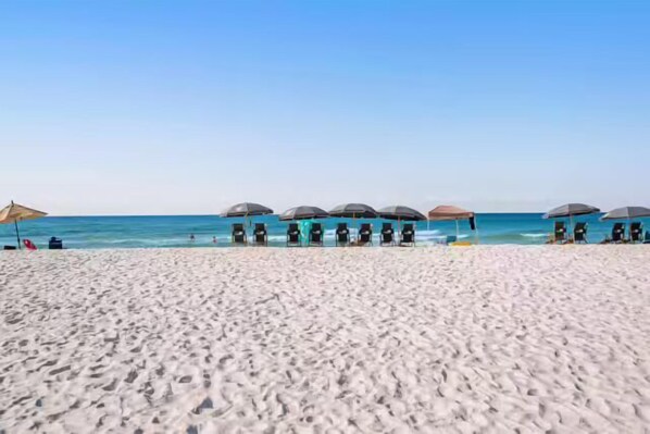 Imagine waking up to the Gulf breeze and stepping into a spacious balcony with panoramic ocean views at this seaside condo. Enjoy direct oceanfront access, soak in the sun on comfy outdoor seating, or unwind in a refreshing shared pool.