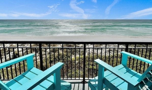 Experience quiet private Okaloosa Island with the most beautiful and clean sugar-white sand beach around. Take your coffee or dinner on our dream sunset view oceanfront balcony seats 5 in comfortable polywood chairs. You'll never want to leave!