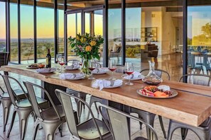 Perched on a hilltop, A Thousand Stars Ranch offers unmatched 360-degree views and modern design across 106 acres. Relax in the infinity pool and hot tub or explore the gourmet kitchen for culinary adventures.
