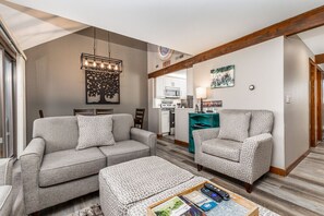 Escape to The Galena Territory with this charming two-bedroom townhouse. Unwind by the wood-burning fireplace in the spacious living room or enjoy a meal on the deck accessed through the open dining area. A galley kitchen, loft space, and private full bath are just some of its comforts.