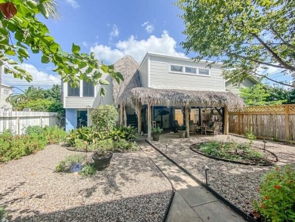Let the Gulf breeze envelop you while you relax with a morning cup of coffee under the Palapa. Fire up the barbeque on the charcoal grill in the fenced backyard! Space for 1 car to park parallel in front of the garage. Garage available for motorcycles.