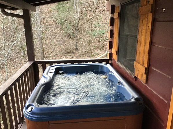 Welcome to Dancing Bears 4 Cabin (Baby Bear Tracks), a quaint and cozy cabin with beautiful views nestled in a woodsy, country setting. The cabin's location is minutes from all the main attractions and places you came for including Dollywood, Gatlinburg, and Pigeon Forge. This cabin has been completely renovated offering brand new Hot tub, furniture, appliances, granite counter tops, washer and dryer, on-site parking, Wifi and a beautiful secluded view! Beautiful open floor plan connecting the kitchen and living room area with gas fireplace. It has a brand new sofa and recliner, big screen TV with DVD player and a collection of classic movies to explore! The area allows an easy flow where the custom made dining room table and chairs sit 4. The kitchen is fully equipped with brand new appliances, granite countertops, cookware and table ware, making meal preparation easy. The main floor consists of kitchen, living room, bedroom w/ brand new Queen size bed and mattress. Completely renovated cabin including bathrooms and floors. Upstairs loft has a 2nd brand new Queen size bed and mattress with 1/2 bathroom for extra convenience. Please remember you are in the mountains and this property is located in a valley. You may see and hear Critters of all kinds including bears. Please be aware that last minute bookings (day of) may or may not be able to be accommodated. We will do our best to make sure the cabin is ready and set for you to stay but in rare circumstances out of our control, there may be complications and the cabin may not be available. These situations will be discussed and handled as bookings occur. We will do our best to make sure you have a place for the evening! Thank you for your cooperation and understanding with these matters. Please note due to the location of the cabin the WiFi can be spotty! Two cabins on same property. This cabin is located in back of one identical cabin to the front. A great convenience for larger parties to come and enjoy while also having enough space for every one to be comfortable. You can see the properties in the pictures for a better understanding.