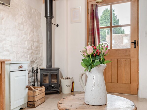 Living area: Freeview TV, DVD Player, Woodburner