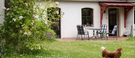 There is a Weber gas grill in the separate thatched garden shed, a cart for trips to the beach and a few other vehicles for children. You can also store your bikes here if necessary. Alternatively, there is still in front of the entrance bicycle handlebars for connection.