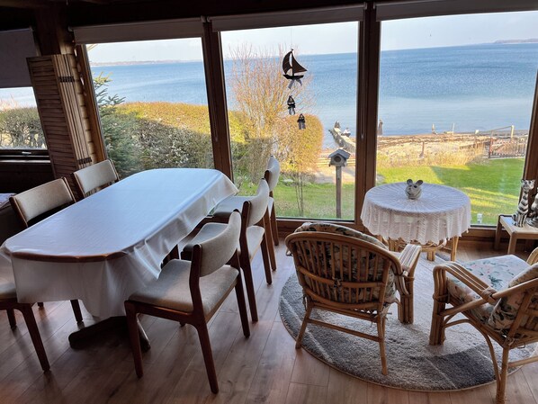 The “Utkiek” vacation home is located in the Bockholm district of Glücksburg, right by the sea and just about 30 meters from the water. The property is located right on the beachfront, features private beach access with a dock, and offers views of the beach and the sea. Thanks to its quiet location, the vacation home is particularly well-suited for anyone who appreciates being just steps away from the water—from an early morning walk to a relaxing day at the beach. The beach is a pebble beach, so you can enjoy your time by the sea as well as activities right at the water’s edge.