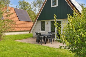 Upgraded 4-person bungalow with dishwasher, washing machine and veranda at park ’t Hooge Holt, near Gramsbergen and playgrounds.