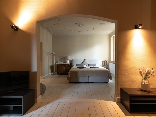 Please note that 2 of the 3 accommodations in the building have an open bathroom (no door between the bathroom and the bedroom).