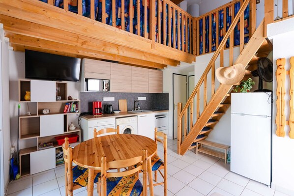 IB64: Air-conditioned, two-bedroom, mezzanine pavillion with a large terrace. provides laundry facilities and more.