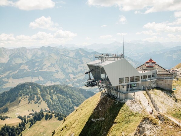 The chalet's sloped location provides a serene and sunny environment for outdoor relaxation in the private garden. Hiking paths in the vicinity, including those at Moléson, offer opportunities for exploring the natural beauty of the region on foot.