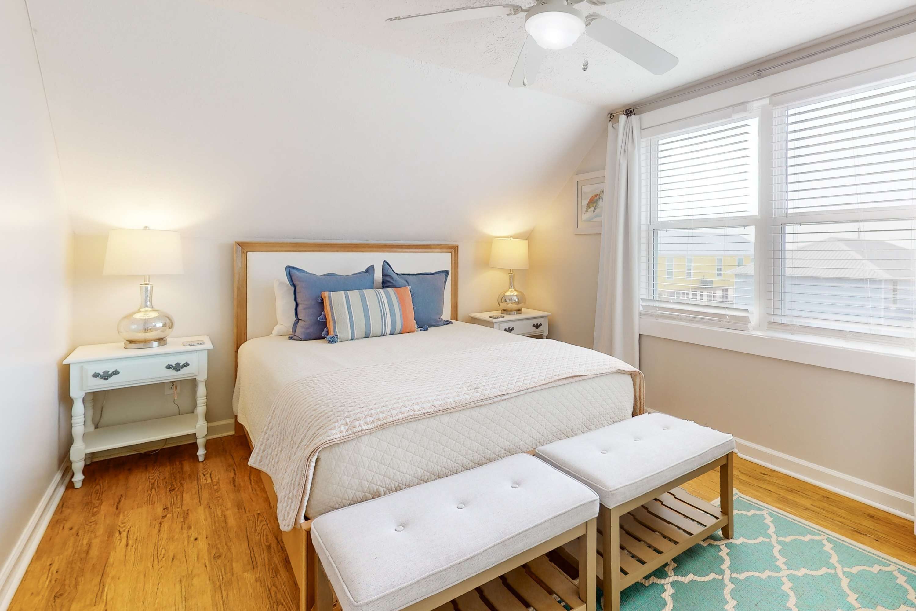 This unique two-story three-bedroom, 2½-bath beach cottage (villa) offers over 1,700 square feet of comfortable living space and a spacious wraparound porch.