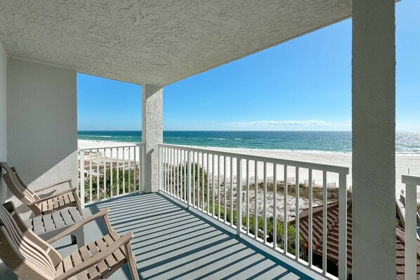 Romar Tower 4B is a charming two-bedroom, two-bath Gulf-front condominium offering incredible panoramic views from the 4th floor. This cozy unit combines comfort and convenience, perfect for a relaxing beach getaway!