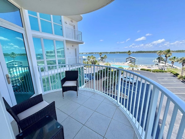 We booked this condo 2 days before our stay due to some unforeseen plumbing issues at the in-laws house. This condo had more to offer than we originally thought. With views of the bay and beach on both ends of the condo. The rooms were setup so that everyone had more than enough space to spread out and enjoy. The people at Poole helped get us a pack n play for our 10 month old to sleep in as some parts were missing from the one at the location. We have no complaints and this may be a place to stay at more often in the future especially at Christmas.