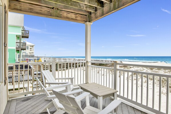 Sandy Hideaways is located on Gulf Shores’ well-known West Beach Blvd. Being directly on the shores of the Gulf, guests can enjoy unobstructed Gulf views from one of the home’s two large decks, or enjoy the shade under the home.