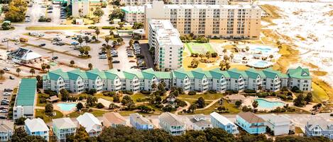 • Aerial view of beach houses at Fort Morgan, Alabama